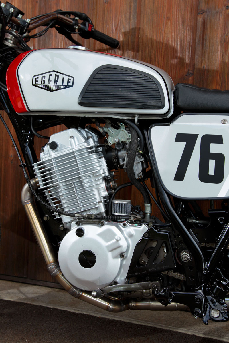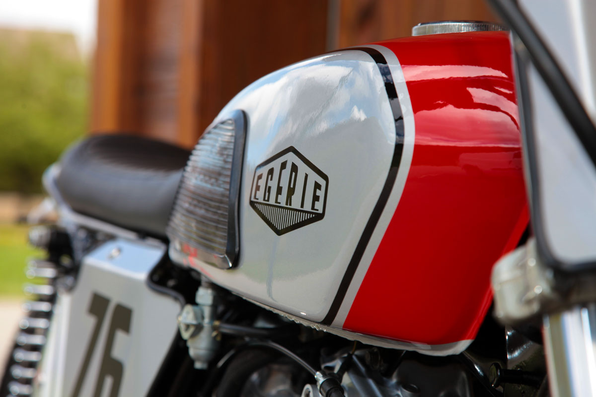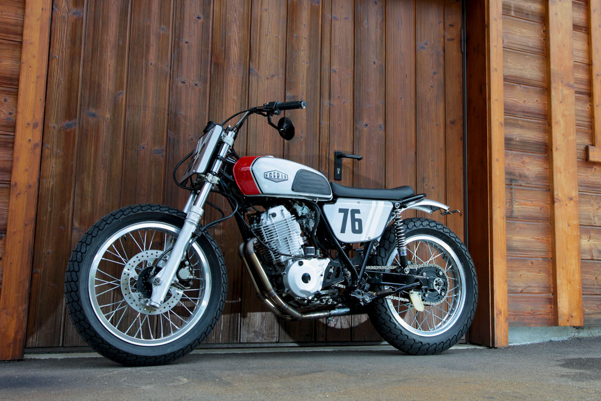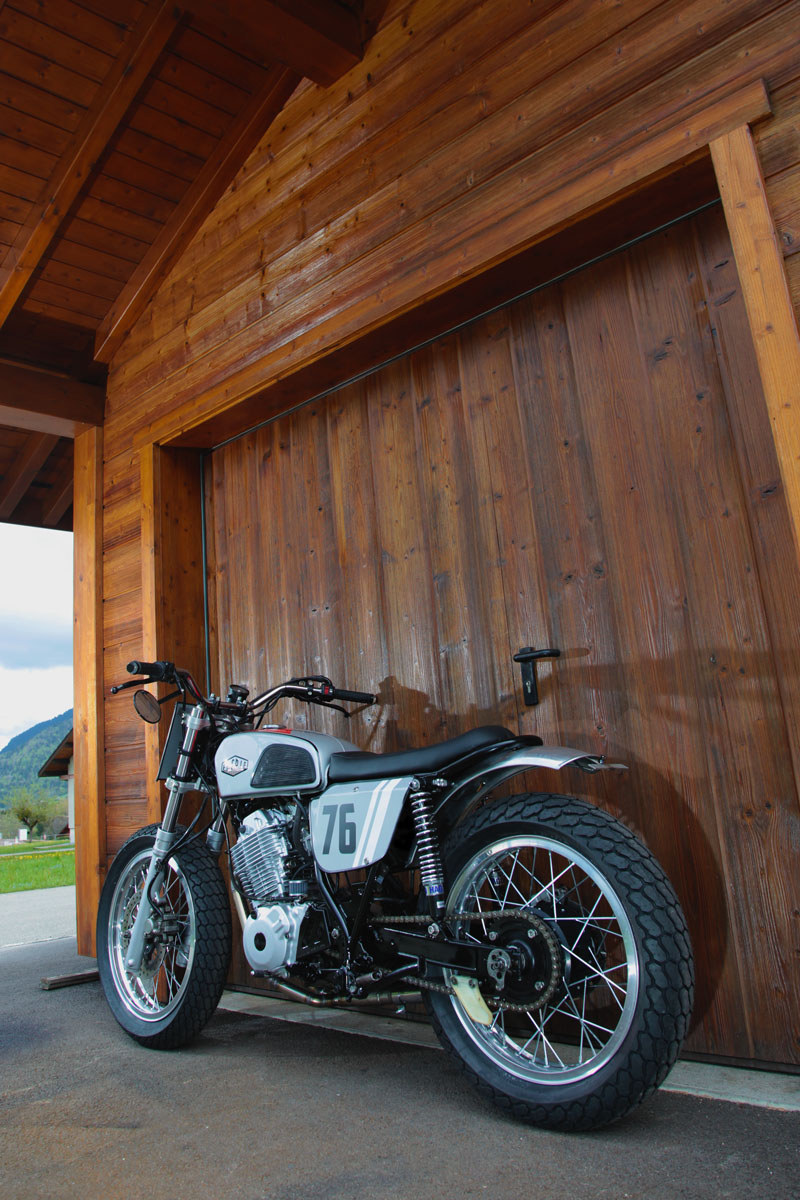 Pour le reste on fait les mêmes modifications : roues en 19" (pneus de flattrack Mitas homologués route), bi-amortisseur, échappement en position basse, drop de la fourche (qu’on garde d’origine pour ne pas rentrer dans une bidouille de frein à grand coups d’adaptateurs), boucle arrière, selle sur mesure etc.